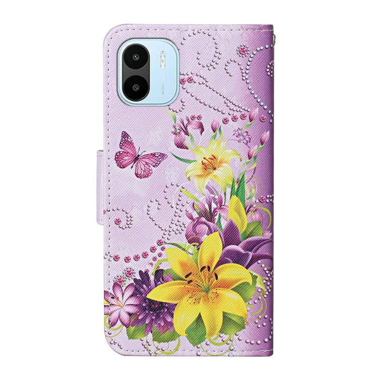 For Xiaomi Redmi A1 Colored Drawing Pattern Leather Phone Case(Yellow Flower Butterfly)