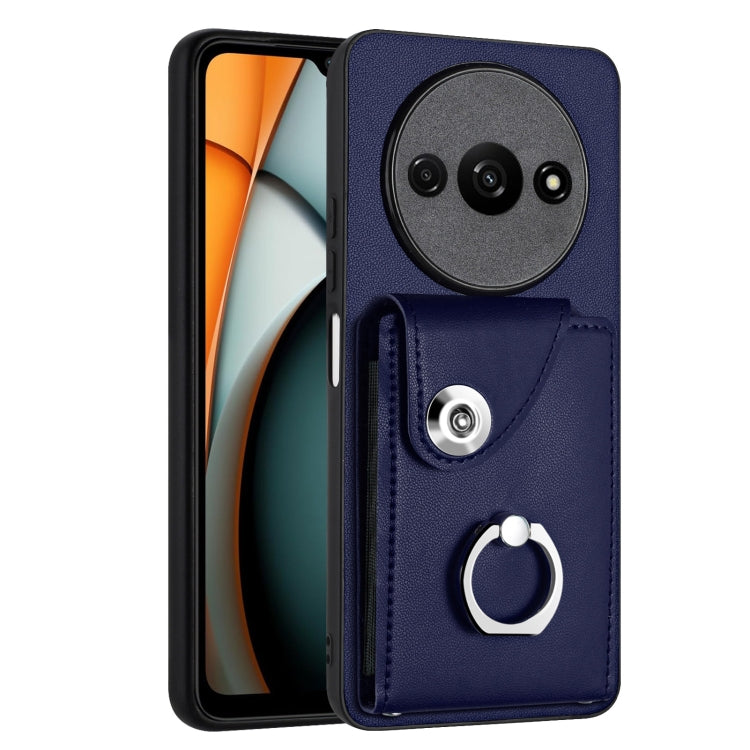 For Xiaomi Redmi A3 4G Organ Card Bag Ring Holder PU Phone Case(Blue)