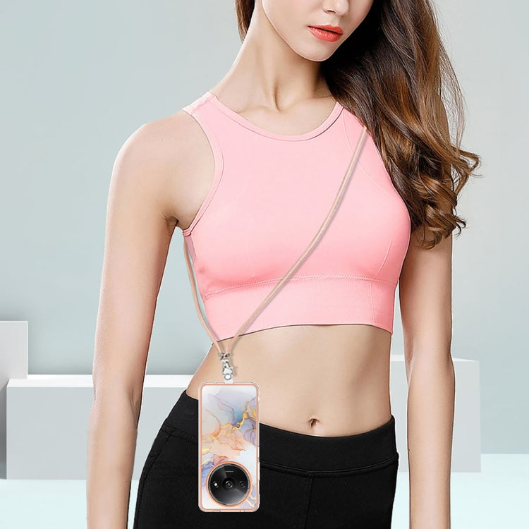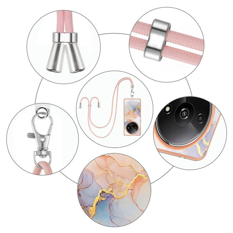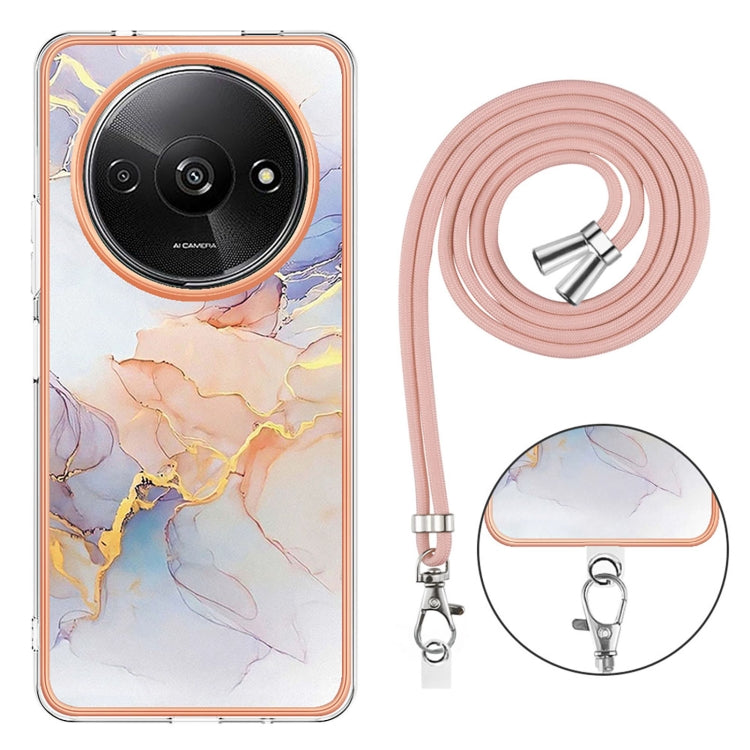 For Xiaomi Redmi A3 Electroplating IMD TPU Phone Case with Lanyard(White Marble)