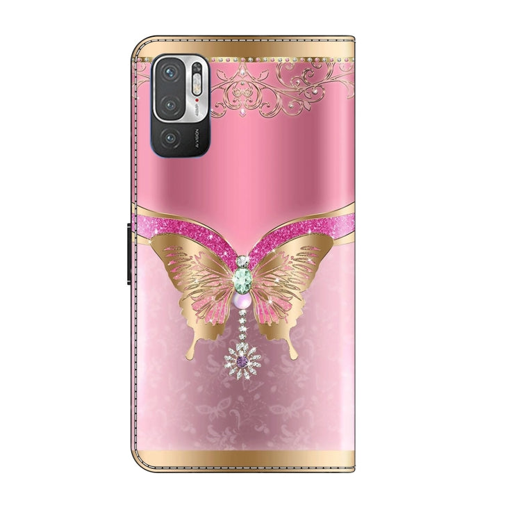 For Xiaomi Redmi Note 10 5G Crystal 3D Shockproof Protective Leather Phone Case(Pink Bottom Butterfly)