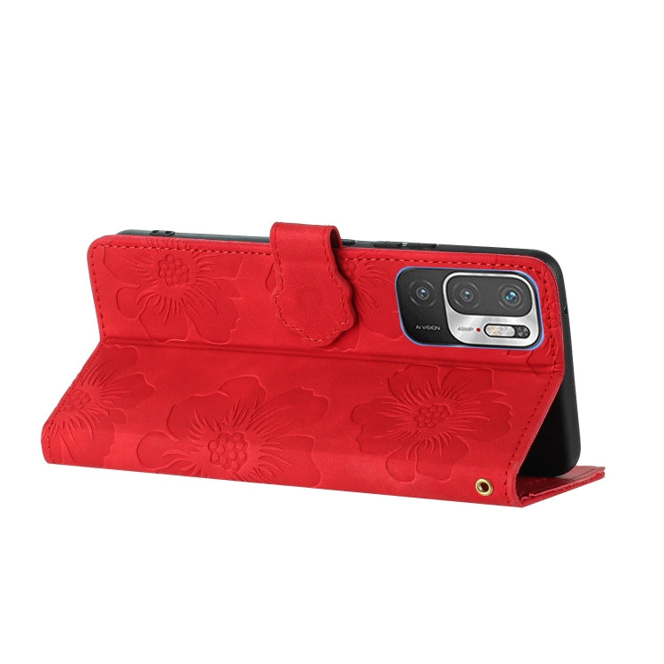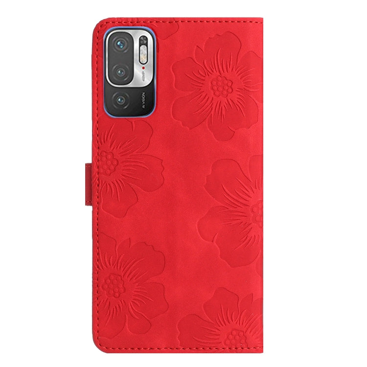 For Xiaomi Redmi Note 10 5G Flower Embossing Pattern Leather Phone Case(Red)