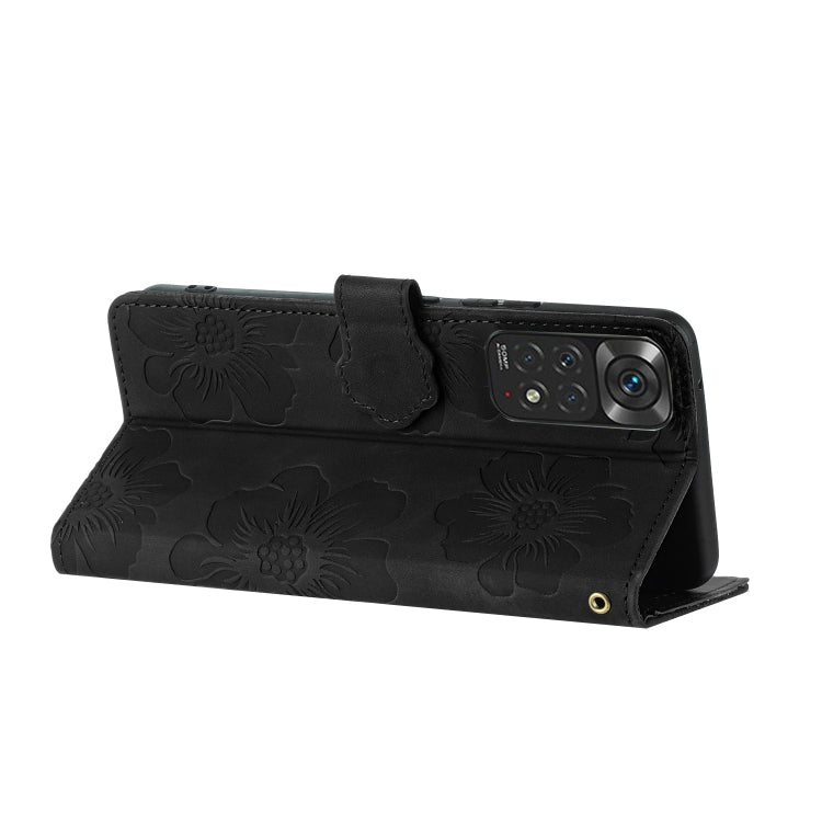 For Xiaomi Redmi Note 11 4G Global / Note 11S Flower Embossing Pattern Leather Phone Case(Black)