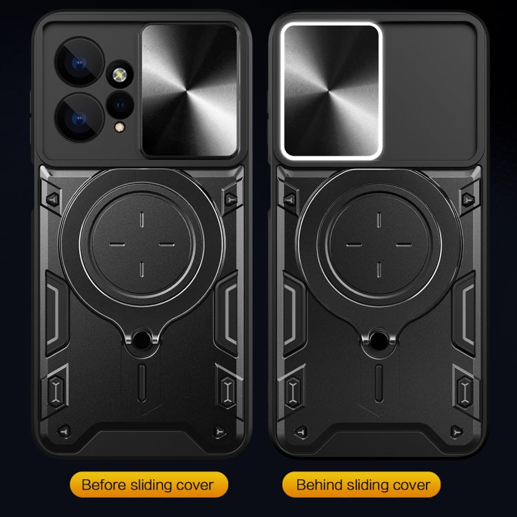 For Xiaomi Redmi Note 12 4G CD Texture Sliding Camshield Magnetic Holder Phone Case(Silver)