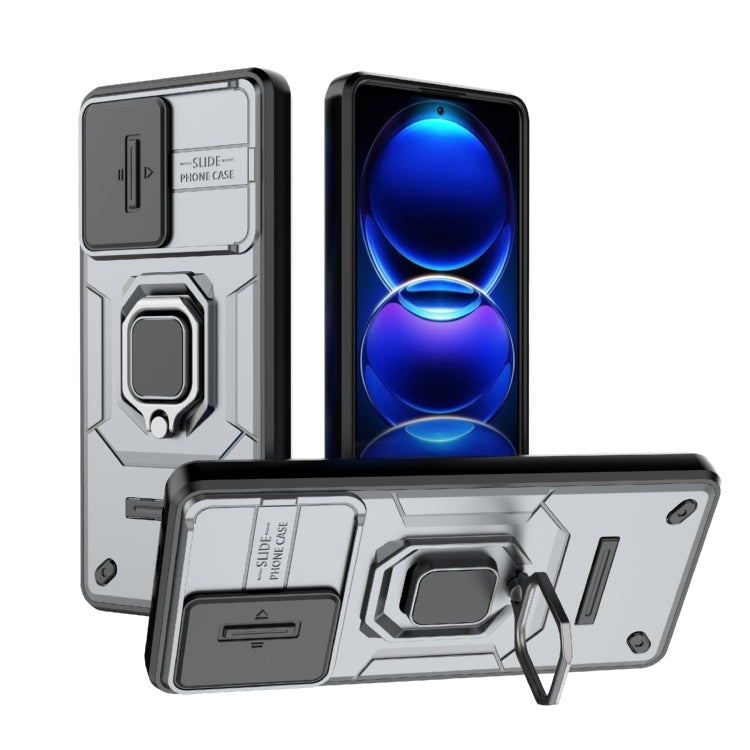 For Xiaomi Redmi Note 12 Pro+ 5G Global Sliding Camshield TPU + PC Shockproof Phone Case with Holder(Grey)