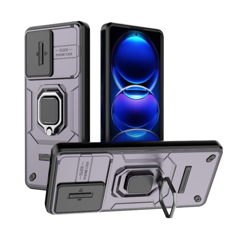 For Xiaomi Redmi Note 12 Pro+ 5G Global Sliding Camshield TPU + PC Shockproof Phone Case with Holder(Purple)