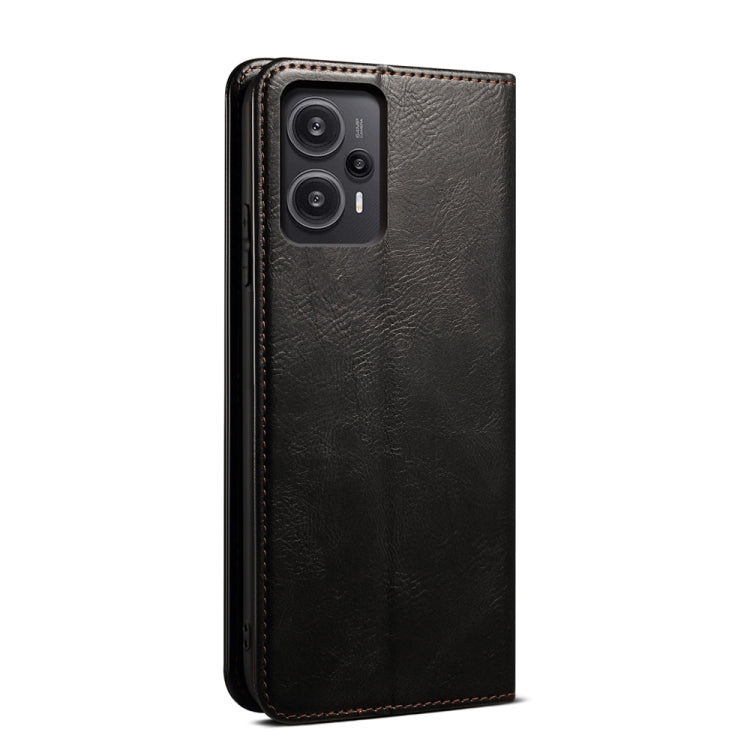 For Xiaomi Redmi Note 12 Turbo / Poco F5 Oil Wax Crazy Horse Texture Flip Leather Phone Case(Black)