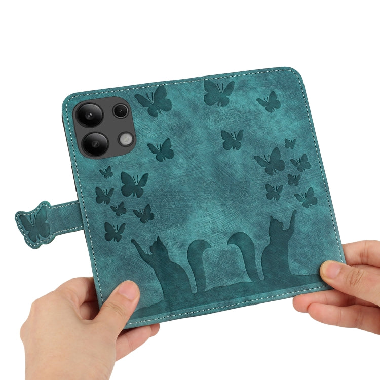 For Xiaomi Redmi Note 13 4G Butterfly Cat Embossing Flip Leather Phone Case(Wathet)