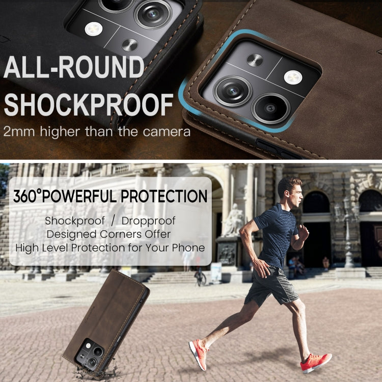 For Xiaomi Redmi Note 13 5G CaseMe 013 Multifunctional Horizontal Flip Leather Phone Case(Coffee)