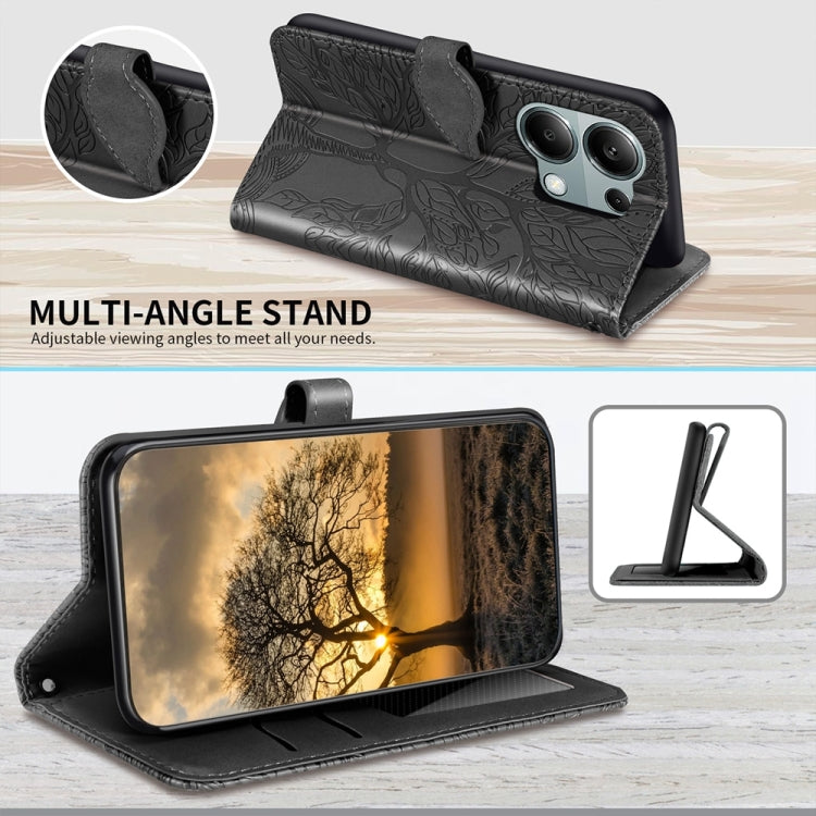 For Xiaomi Redmi Note 13 Pro 4G Life Tree Embossing Pattern Leather Phone Case(Black)