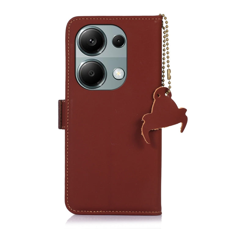 For Xiaomi Redmi Note 13 Pro 4G / POCO M6 Pro 4G Genuine Leather Magnetic RFID Leather Phone Case(Coffee)