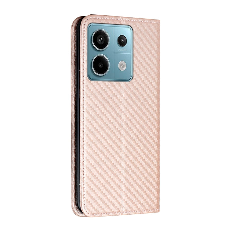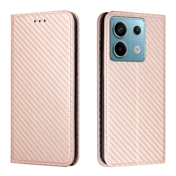 For Xiaomi Redmi Note 13 Pro 5G Carbon Fiber Texture Flip Holder Leather Phone Case(Rose Gold)