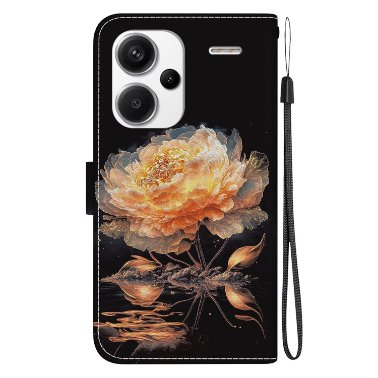 For Xiaomi Redmi Note 13 Pro+ 5G Crystal Texture Colored Drawing Leather Phone Case(Gold Peony)