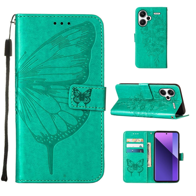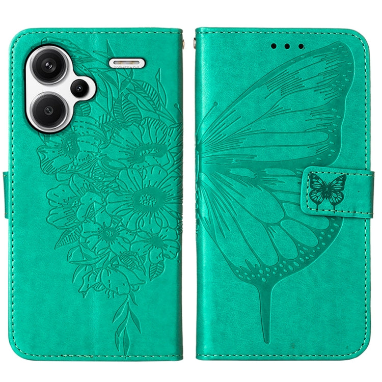For Xiaomi Redmi Note 13 Pro+ 5G Embossed Butterfly Leather Phone Case(Green)