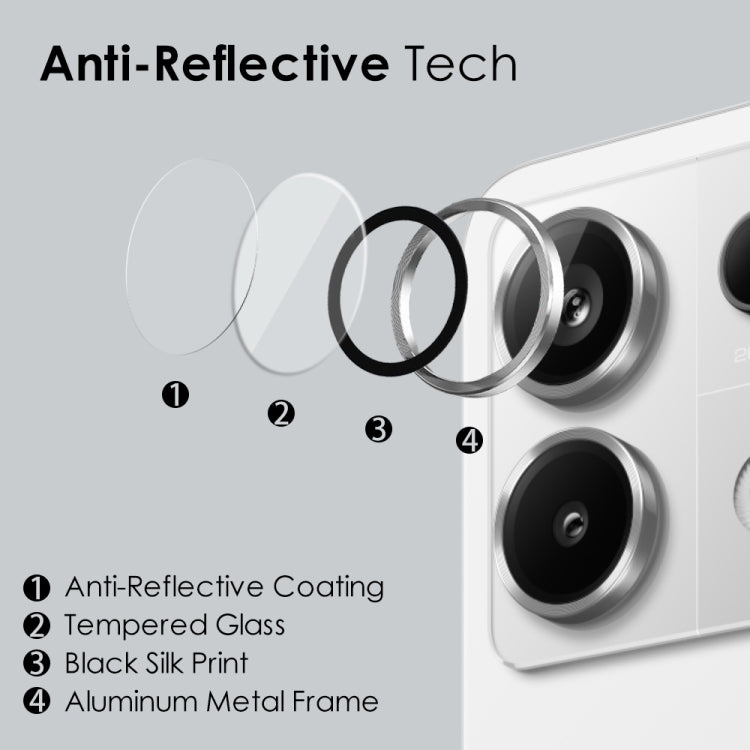 For Xiaomi Redmi Note 13 Pro 5G NORTHJO Camera LensCD Vein Metal Ring Tempered Glass Film(Silver)