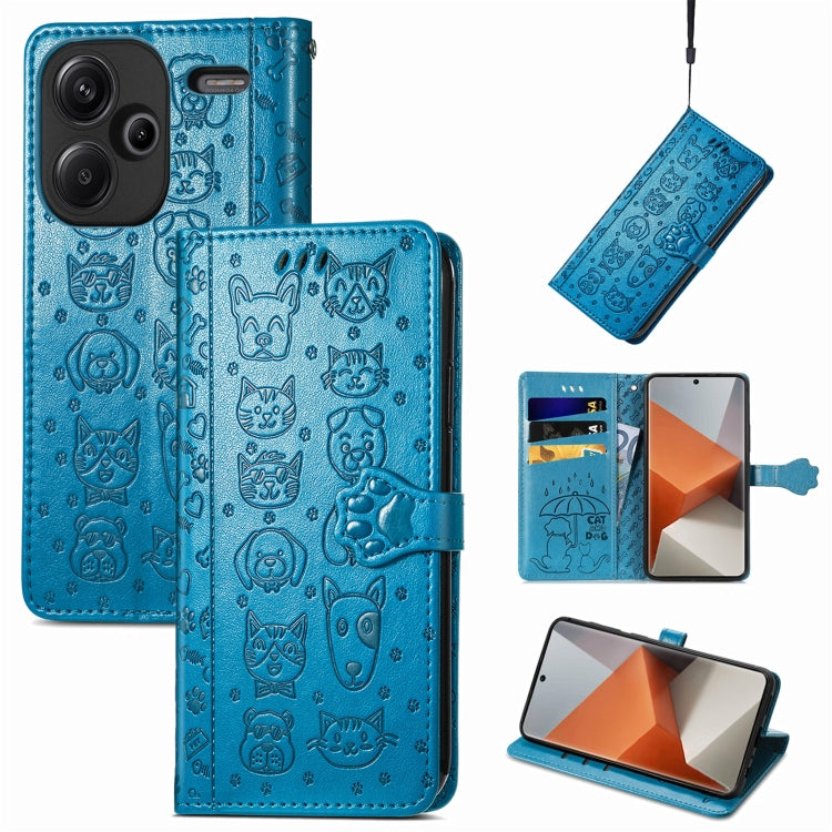 For Xiaomi Redmi Note 13 Pro+ Cat and Dog Embossed Leather Phone Case(Blue)