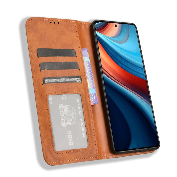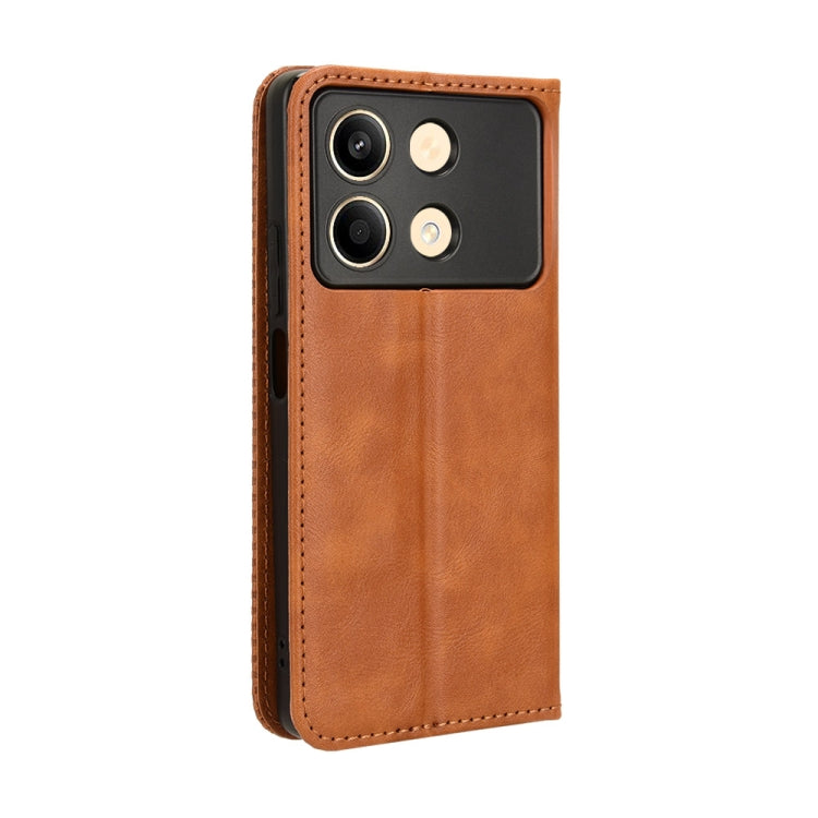 For Xiaomi Redmi Note 13R Pro 5G Magnetic Buckle Retro Texture Leather Phone Case(Brown)