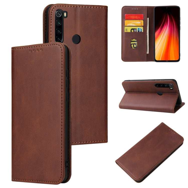 For Xiaomi Redmi Note 8 Calf Texture Magnetic Horizontal Flip Leather Case with Holder & Card Slots & Wallet(Brown)
