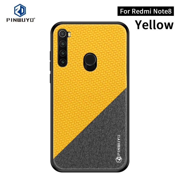 For Xiaomi RedMi Note 8 PINWUYO Rong Series Shockproof PC + TPU+ Chemical Fiber Cloth Protective Cover(Yellow)