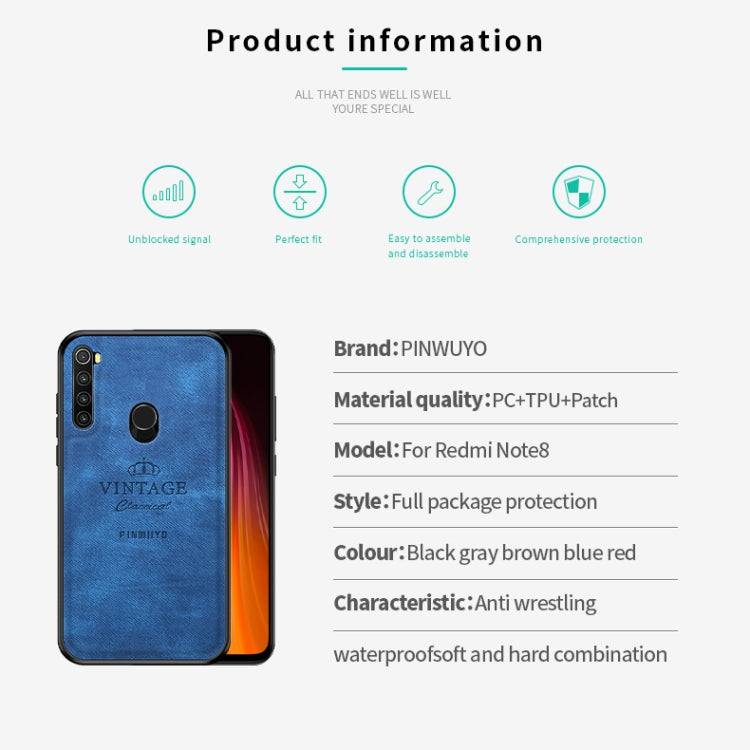 For Xiaomi RedMi Note 8 PINWUYO Zun Series PC + TPU + Skin Waterproof And Anti-fall All-inclusive Protective Shell(Blue)
