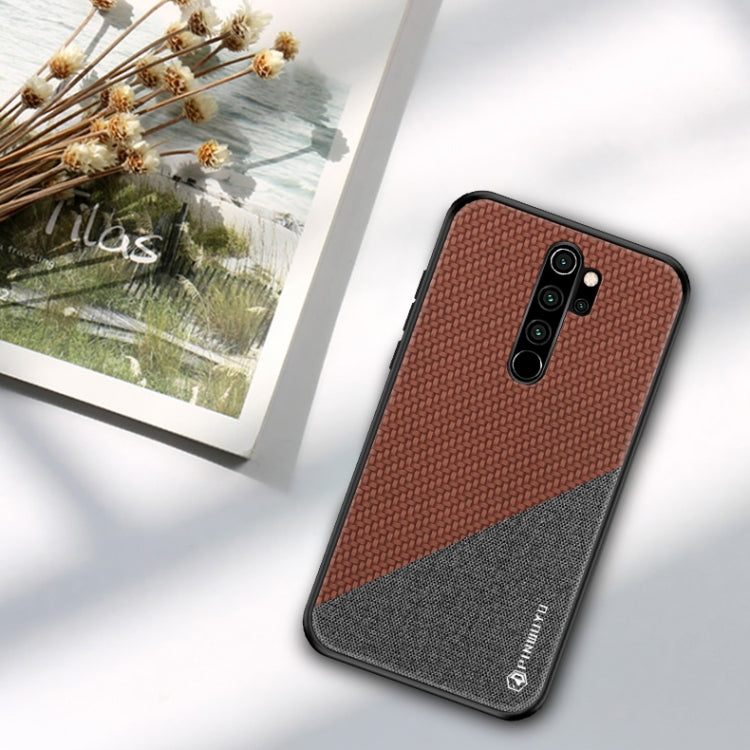 For Xiaomi RedMi Note 8 Pro PINWUYO Rong Series Shockproof PC + TPU+ Chemical Fiber Cloth Protective Cover(Brown)