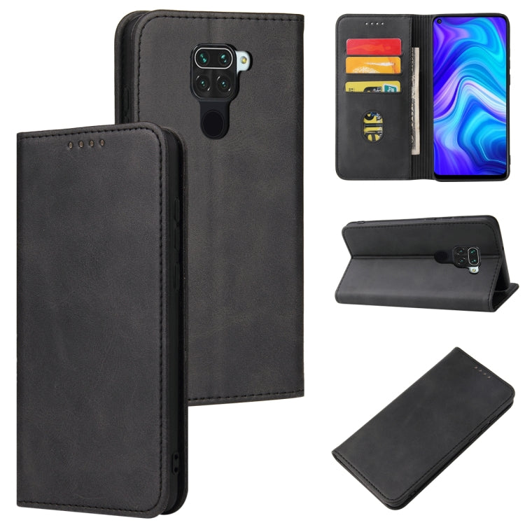For Xiaomi Redmi Note 9 Calf Texture Magnetic Horizontal Flip Leather Case with Holder & Card Slots & Wallet(Black)