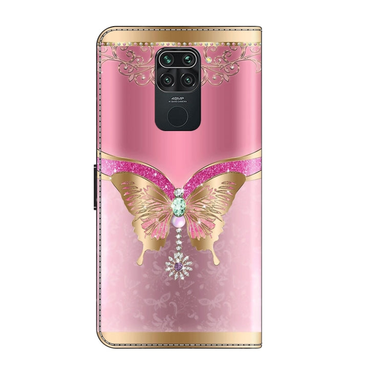 For Xiaomi Redmi Note 9 Crystal 3D Shockproof Protective Leather Phone Case(Pink Bottom Butterfly)