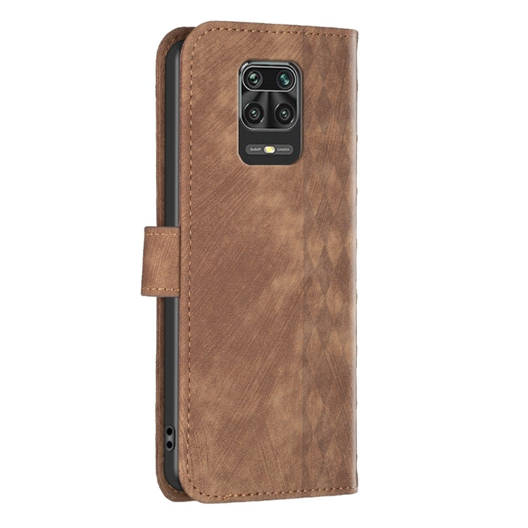 For Xiaomi Redmi Note 9 Pro Plaid Embossed Leather Phone Case(Brown)