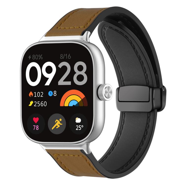 For Xiaomi Smart Band 9 Pro/8 Pro/Redmi Watch 5/4 xDfind Crazy Horse Pattern Silicone Skin Magnetic Buckle Watch Band(Light Brown)