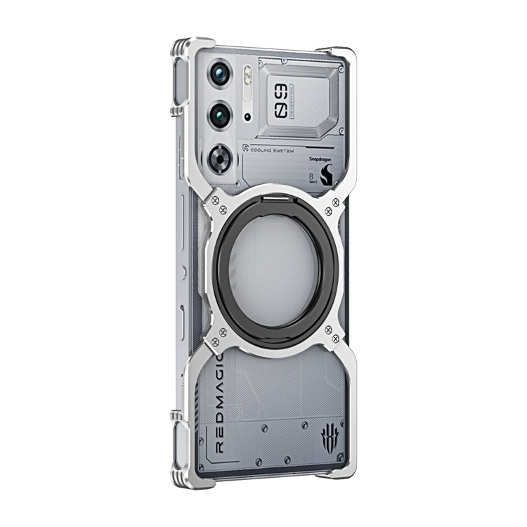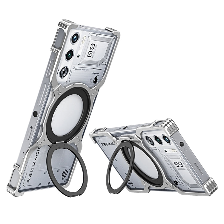 For ZTE nubia Red Magic 10 Pro / 10 Pro+ Mechanical Arm Borderless MagSafe Holder Metal Phone Case(Silver)