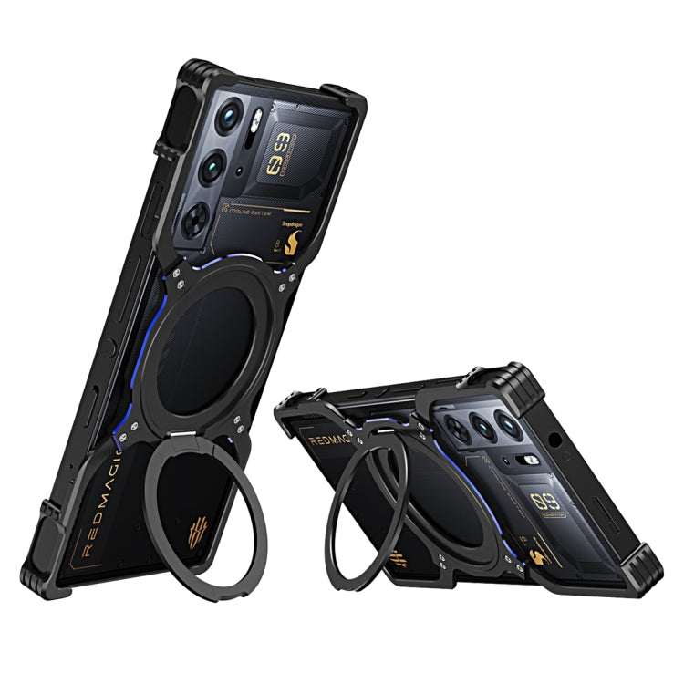 For ZTE nubia Red Magic 9 Pro / 9 Pro+ Mechanical Arm Borderless MagSafe Holder Metal Phone Case(Black Blue)