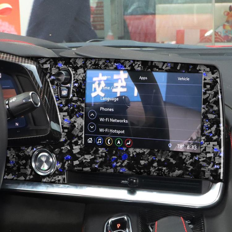 Forged Gold Foil Carbon Fiber Car Central Control Screen Frame Decorative Sticker for Chevrolet Corvette C8 2020-, Left Driver(Blue)