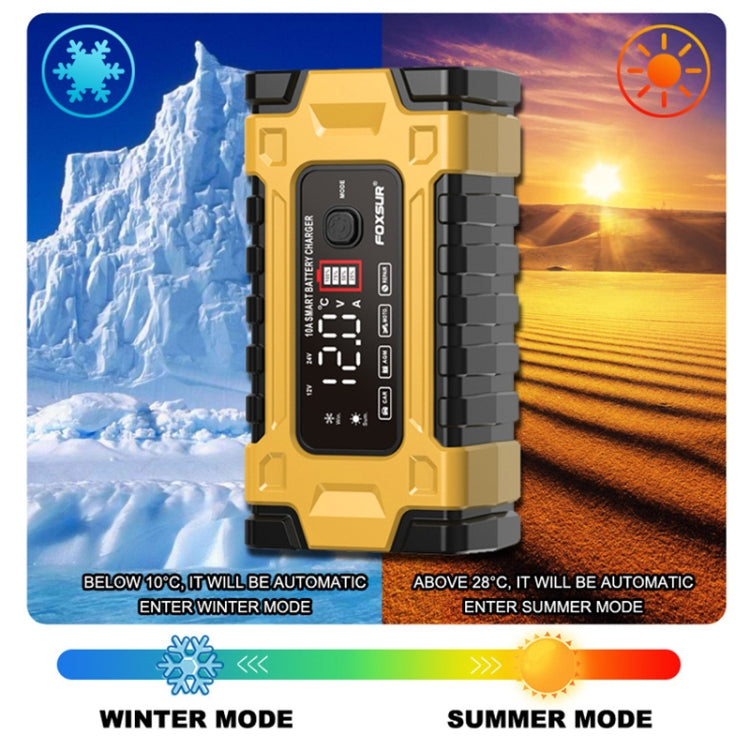 FOXSUR 12V / 24V / 10A Car / Motorcycle Battery Smart Repair Lead-acid Battery Charger(UK Plug Yellow)