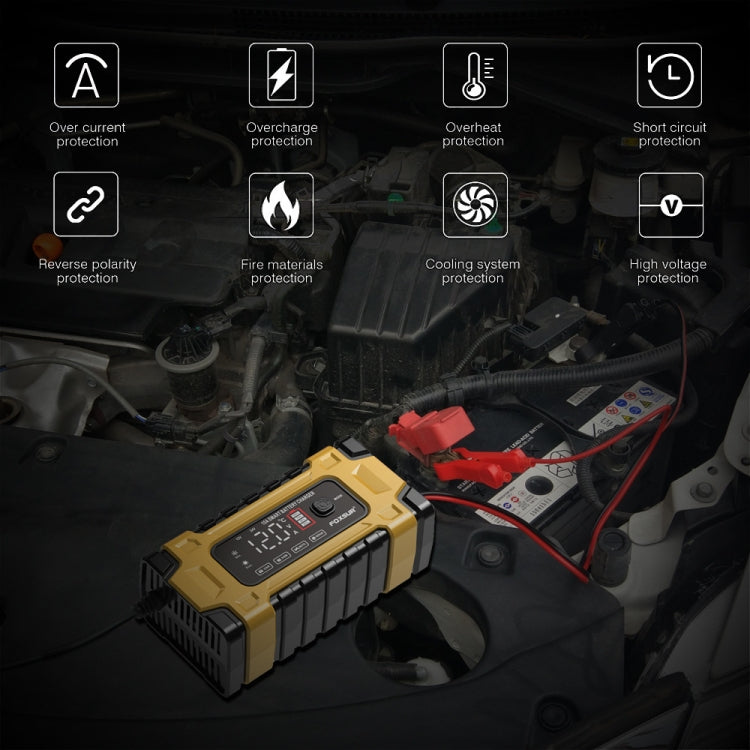 FOXSUR 12V / 24V / 10A Car / Motorcycle Battery Smart Repair Lead-acid Battery Charger(US Plug Yellow)