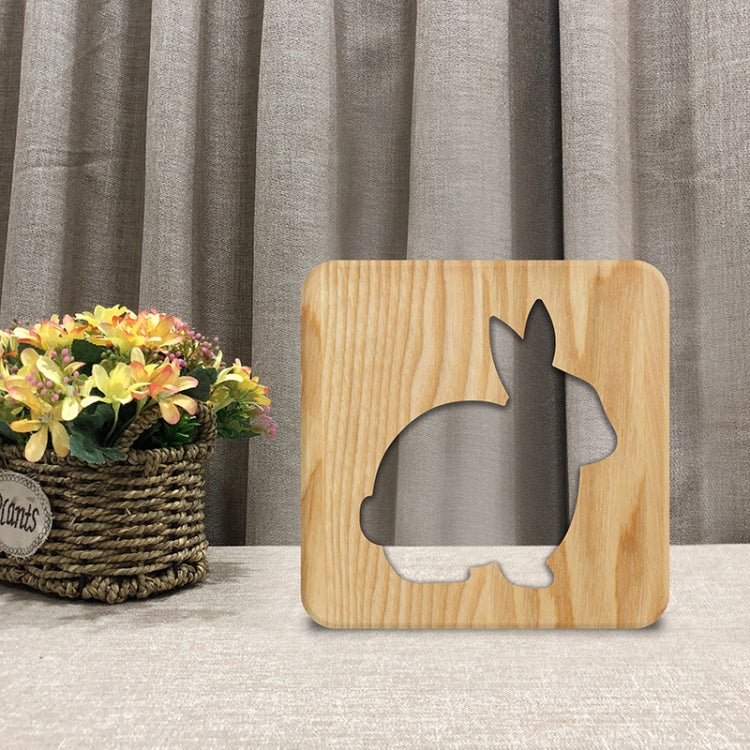 FS-T2104W 3D Wooden Carving Rabbit Table Lamp USB Night Light Crafts(Warm White)