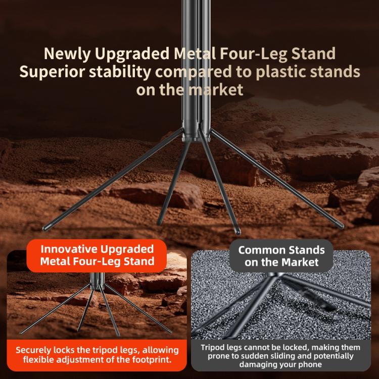 2. Reinforced Metal Frame: Features a durable four-legged metal skeleton design, offering superior stability compared to traditional tripods.