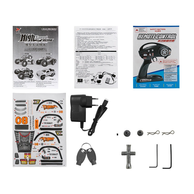FY-08 Brushless Version 2.4G Remote Control Off-road Vehicle 1:12 Four-wheel Drive Short Truck High-speed Remote Control Car, EU Plug (Orange)