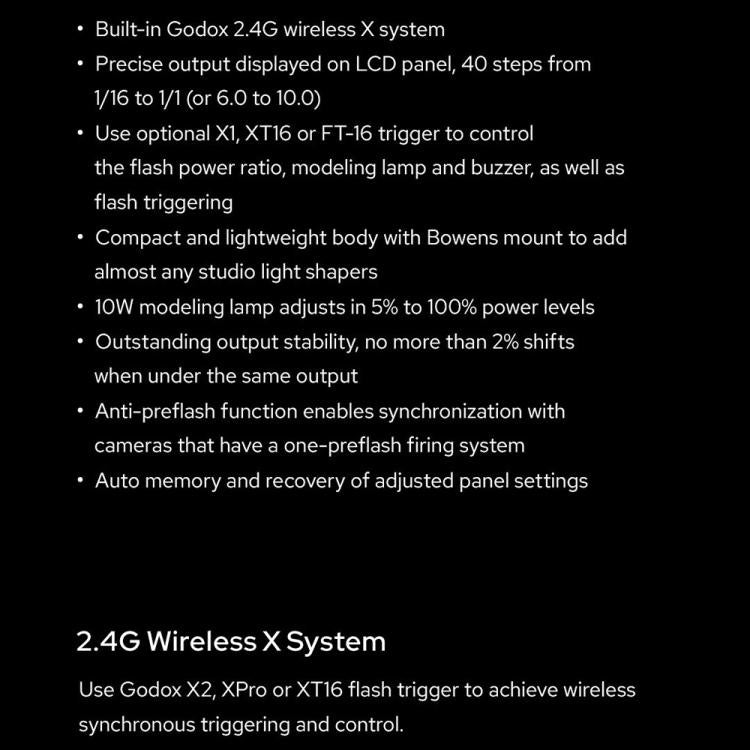 3. Built-in Godox 2.4G wireless X-system with excellent functions