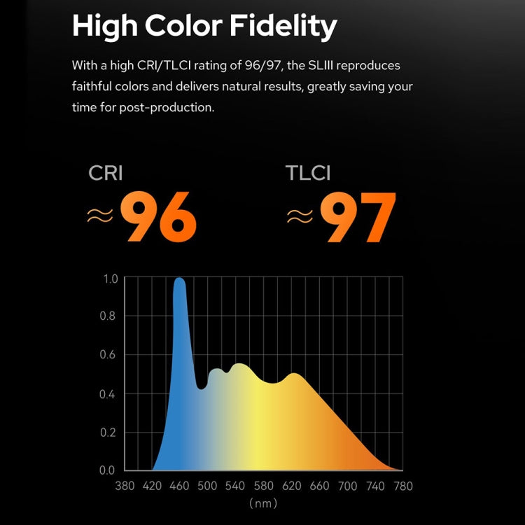 3. High Color Fidelity: With a high CRI/TLCI rating of 96/97, the SLIII reproduces faithful colors and delivers natural results, greatly saving your time for post-production.
