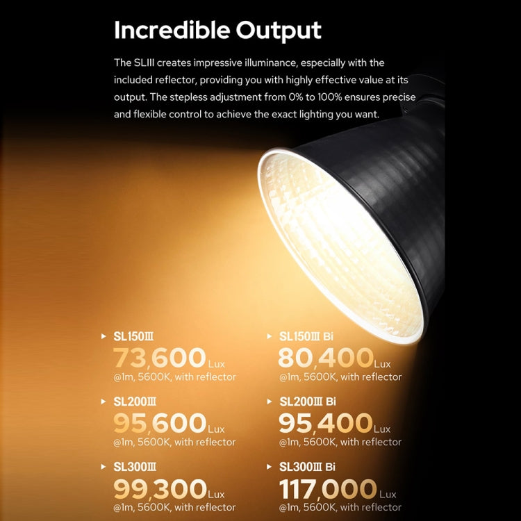 1. Incredible Output: The SLIII creates impressive illuminance, especially with the included reflector, providing you with highly effective value at its output. The stepless adjustment from 0% to 100% ensures precise and flexible control to achieve the exact lighting you want.