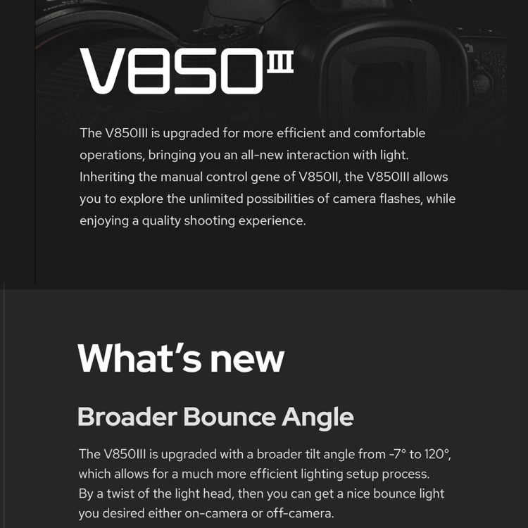 3. Powerful and convenient lithium-ion battery, 1.5 second recovery time, 650 flashes at full power. 2600mAh lithium battery can guarantee better shooting performance.