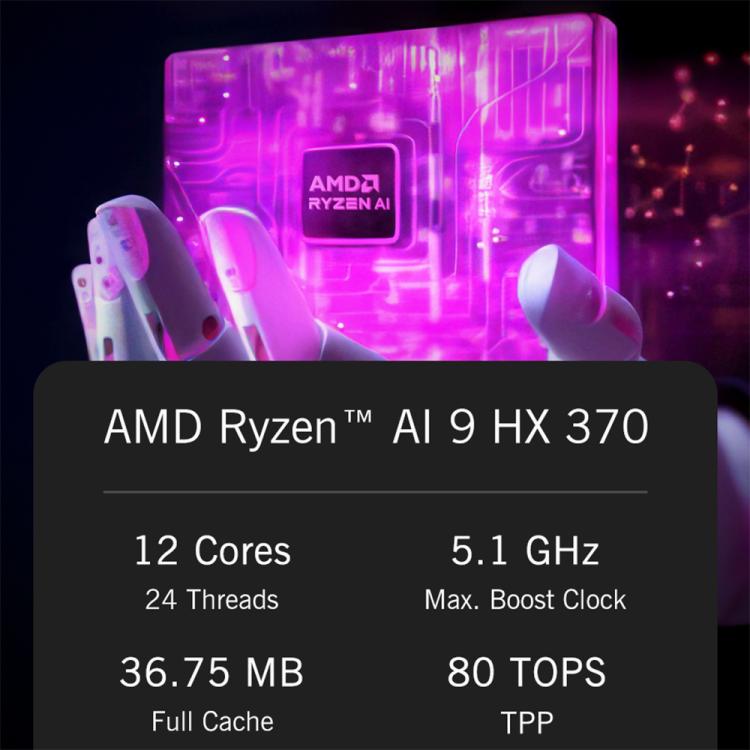 3. AMD Ryzen AI 9 HX 370 APU featuring AMD Radeon 890M Graphics, 32GB LPDDR5x 7500 MT/s memory, 2TB SSD