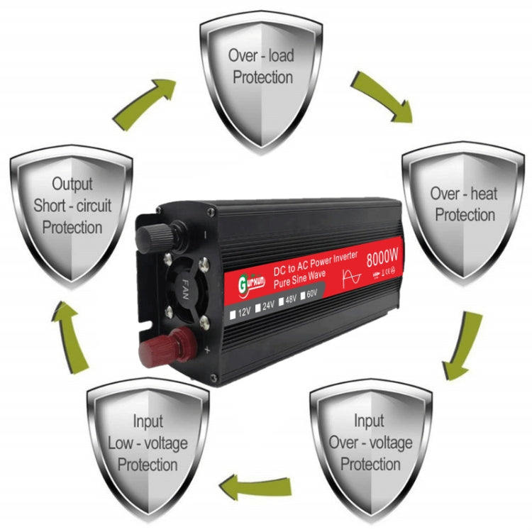 Gurxun 8000W High Power Household Car Sine Wave Inverter, Specification: 60V To 220V