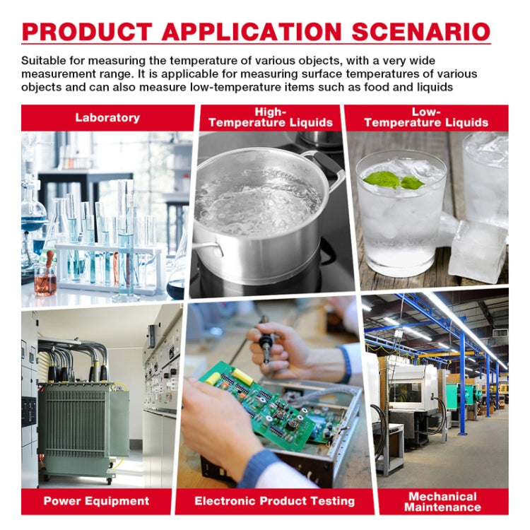 2. Suitable for measuring the surface temperature of various objects, but also can measure food, liquids and other low-temperature items