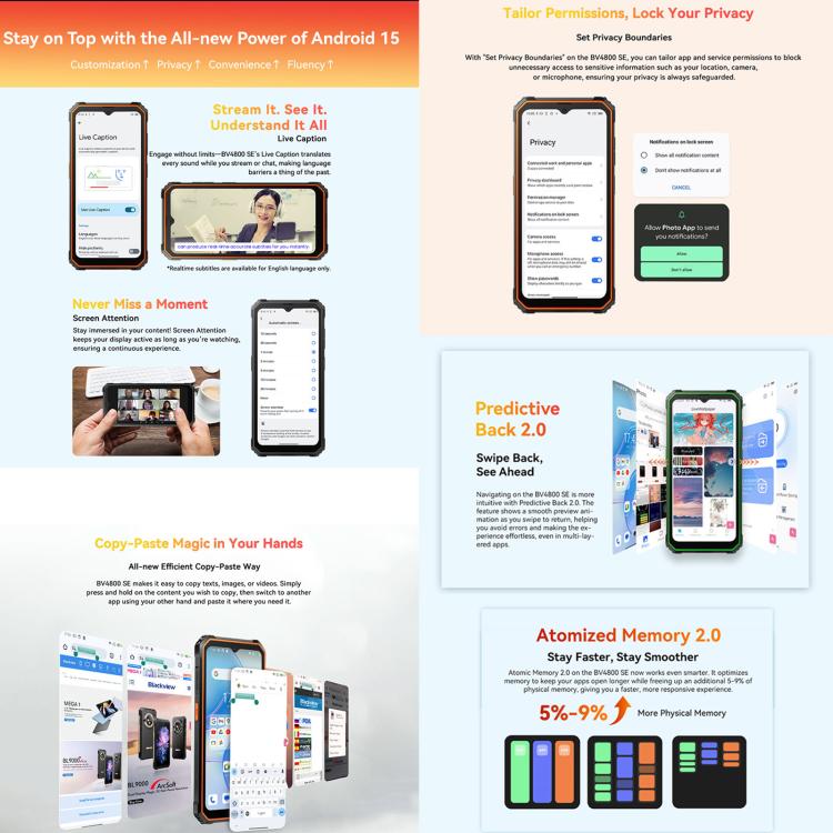 Blackview BV4800 SE Rugged Phone, 4GB+64GB, 6.56 inch Android 15 UMS9320E T615 Octa Core, Network: 4G, OTG, NFC (Orange)