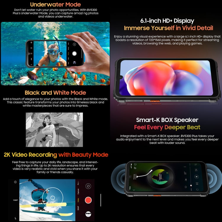 Blackview BV5300 Plus, 8GB+128GB, IP68/IP69K/MIL-STD-810H, 6.1 inch Android 13 MediaTek Helio G72 Octa Core, Network: 4G, OTG(Orange)