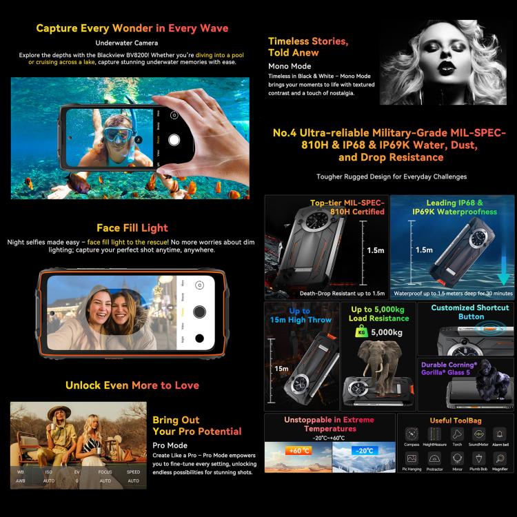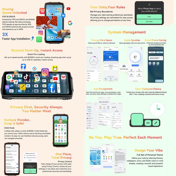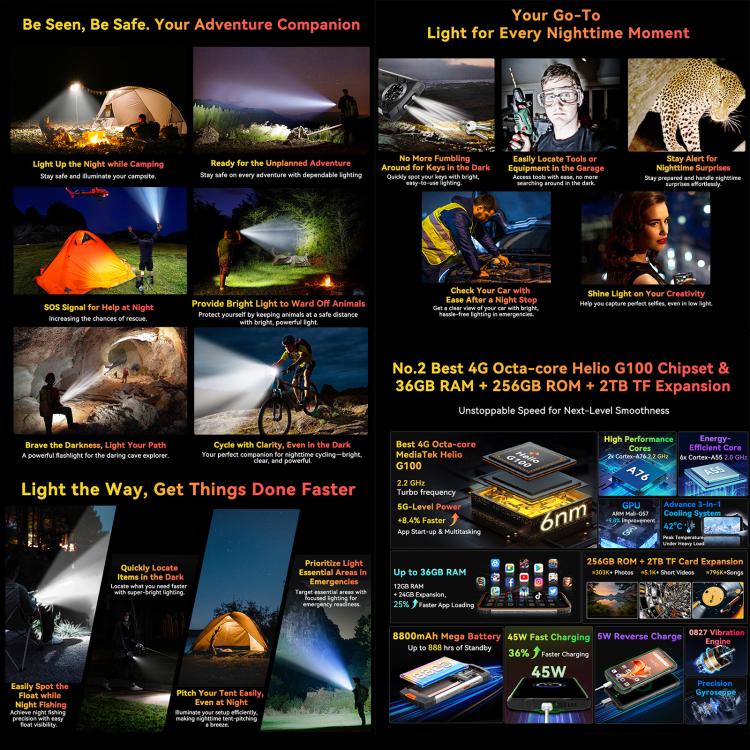 Blackview BV8200 Rugged Phone, 12GB+256GB, 6.5 inch + 1.3 inch Android 14 MediaTekHelio G100 MT8781, Network: 4G, NFC (Green)