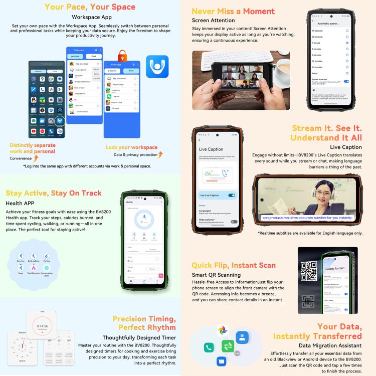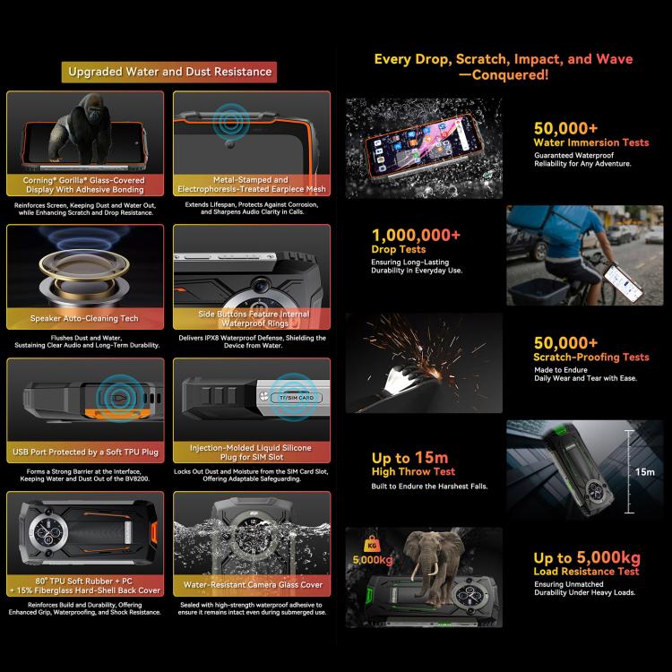 Blackview BV8200 Rugged Phone, 12GB+256GB, 6.5 inch + 1.3 inch Android 14 MediaTekHelio G100 MT8781, Network: 4G, NFC (Orange)