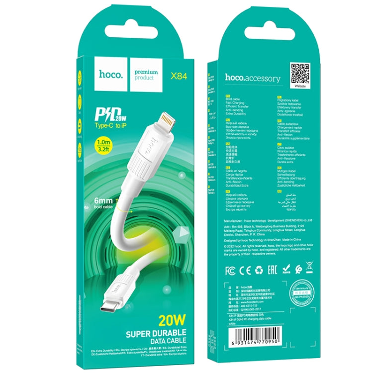 hoco X84 20W USB-C / Type-C to 8 Pin Solid PD Charging Data Cable,Length:1m(White)