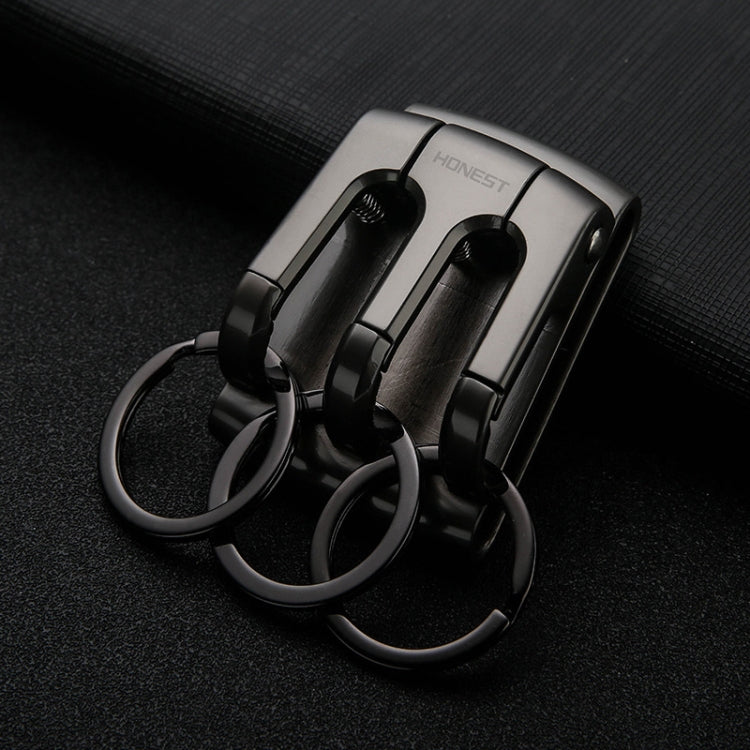 HONEST 3-ring Car Keychain Waist-hanging Anti-loss Keychain For Men(Black)