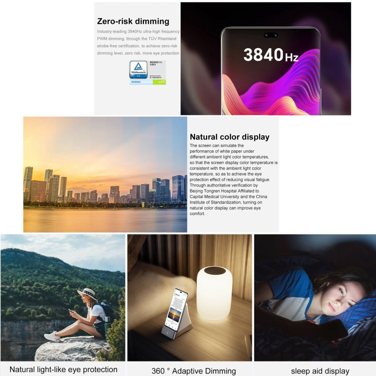 3. Camera Functions: Rear camera: Dynamic photos, time-lapse photography, AI photography, AI video, super wide angle, large aperture, multi-lens recording, night scene mode, portrait mode, professional photography, video recording, slow motion, panorama mode, HDR photography, filters, Watermark, document scanning, super macro, smiley face capture, voice-activated photography, timed shooting, continuous shooting, high-pixel mode, protagonist mode, night scene recording, micro-movie, etc. Front camera: Dynamic photos, portrait mode, time-lapse photography, night scene mode, filters, smile capture, selfie mirroring, voice-activated photography, timed photography, gesture photography, watermark mode, high-pixel mode, etc.